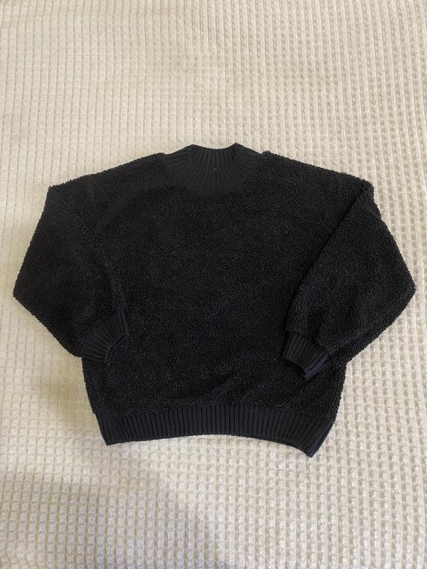 Черный свитер «овца», синтетический материал, имитация шерсти овцы, мягкий и теплый. Подойдет на осень и теплую зиму. Длина 59 см, ширина под подмышками 53 см, длина рукава от плеча 47 см.