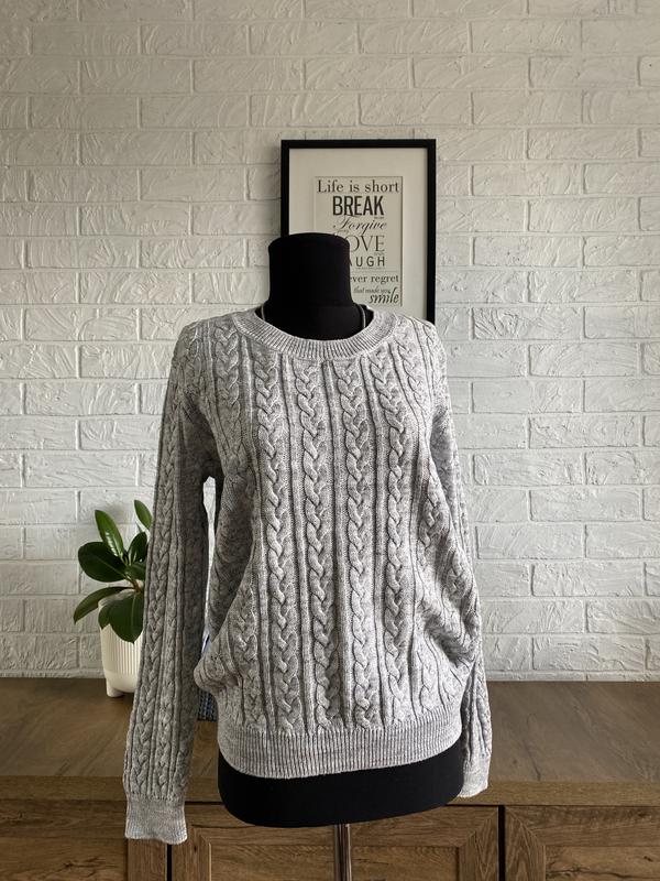 Свитер лонгслив пуловер хлопок h&m серый меланж косы,m,38