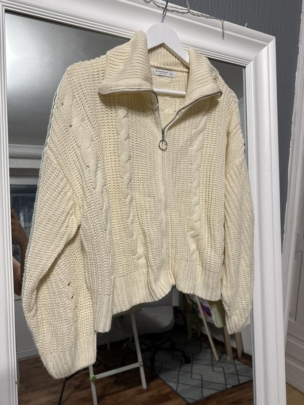 Трендовый свитер с высоким воротником Молочного цвета