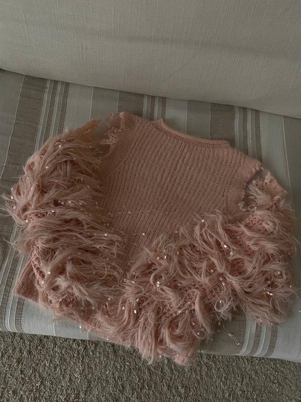 Очень мягкий свитерик с рукавами в сетку. Цвет персиковый. Стан идеален. Размер оверсайз. Подойдет на грудь от 80 до 95 см. Длина от плеча 56 см. Длина рукава от воротничка 72 см Цена 500 грн