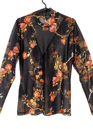 Нежный в цветочный принт романтик гольф блузка сетка, размер М/Л
