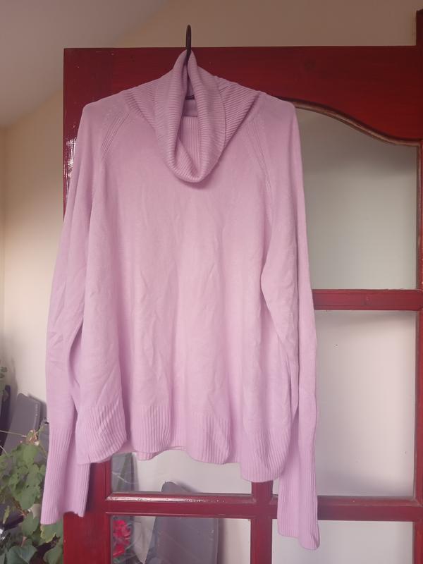 Мягкий,нежный,очень приятный к телу свитерок бу длина 66 см. ширина подмышками 63 см ( полуобхват) рукав идёт сплошной от шеи длина рукава 83 см.