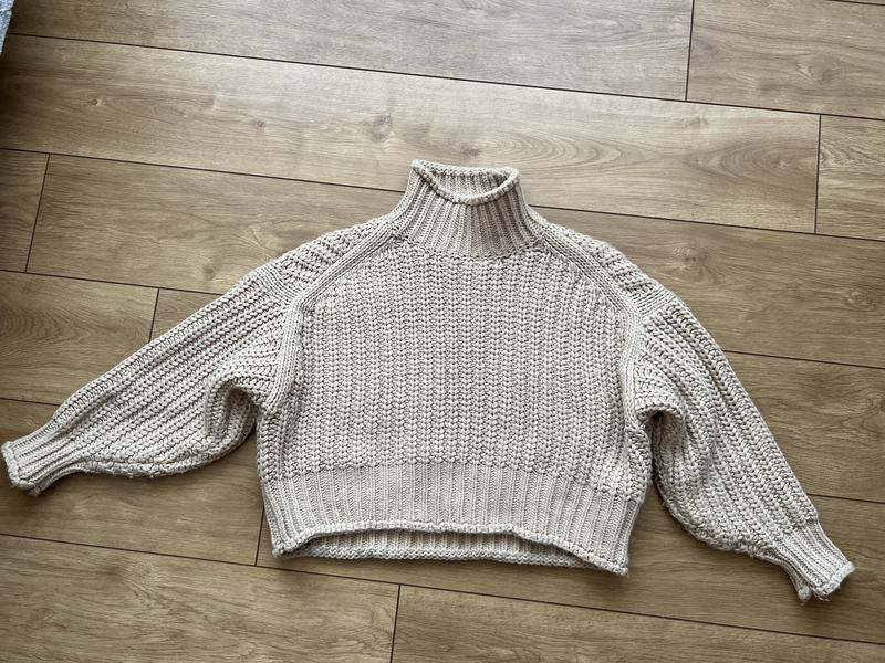 S-M, в ідеал стані, дуже теплий, рукава біля плеча обʼємні і звужуються. Гарно сидить. Бірка була вимазана не відстірується Фото на тілі, можу скинути в чат