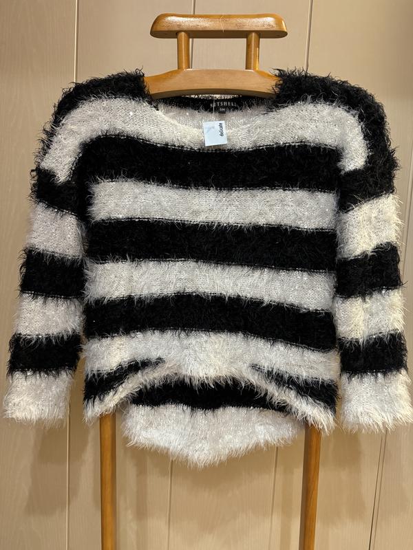 У наявності гарний светр фірми NUTSHELL. Розмір вказаний S/M. Склад: 53% акрил і 47% поліестер..нитка дуже м'яка та приємна до тіла, добре тягнеться. Напівоб'єм у грудях — 47 см і ще тягнеться Довжина спереду — 45 см, ззаду — 55 см Плечі приспущені Довжина рукава від коміра — 55 см Напівоб'єм у стегнах -47 см і ще добре тягнеться