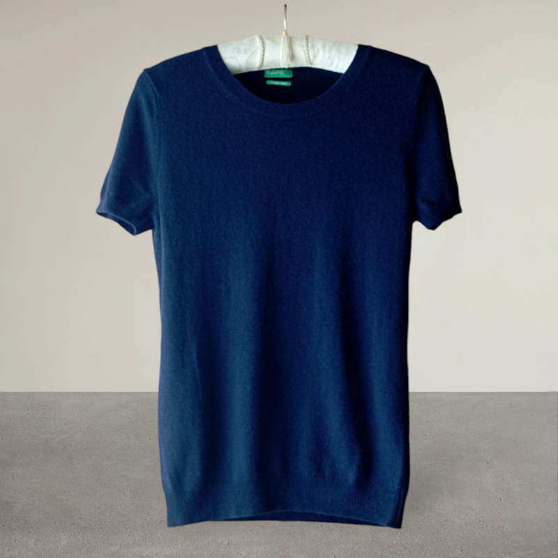 Свитер с коротким рукавом от BENETTON , цвет темно синий, в составе шерсть, кашемир и вискоза ( свитер не колит), состояние отличное. Размер М. плечи 37 комку 44 длина 62