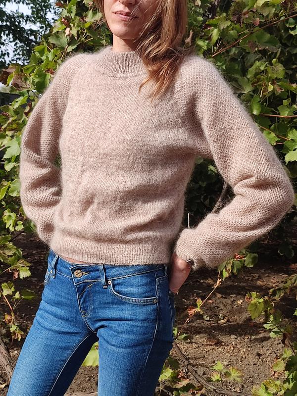 Жіночий светр ручної роботи. Зв'язаний з ниток мохер (100% Італія). Розмір 42 - 44. Колір кава з молоком. Тоненький але дуже теплий. М'який та приємний на дотик.