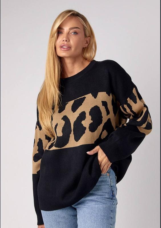 0_0012/1/9 Размер универсальный Замеры ПОГ 60см Длина 70см Длина рукава от горловины 75см Производитель Турция 🇹🇷 Качественный трендовый вязаный свитер с акцентом в виде леопардовой полоски Крой оверсайз Цвета: черный и молоко Реал ! ‼️На этот товар только полная оплата!!️