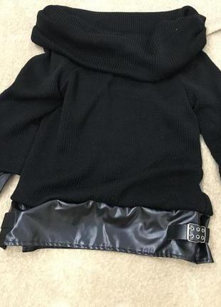 Стильный вязаный свитер с кожаными вставками открывающий плечики Турецкое производство Размер L При покупке 2,3,4-х вещей скидка 10%