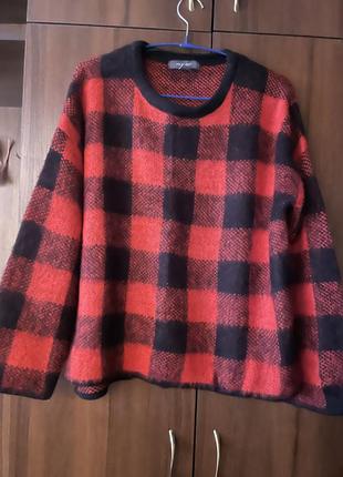 светр в клітинку. Дуже теплий прямого силуету Заміри : ПОГ60 см. Довжина рукава від шиї 71 см, Довжина виробу спереду 56 см. Ззаду 59 см