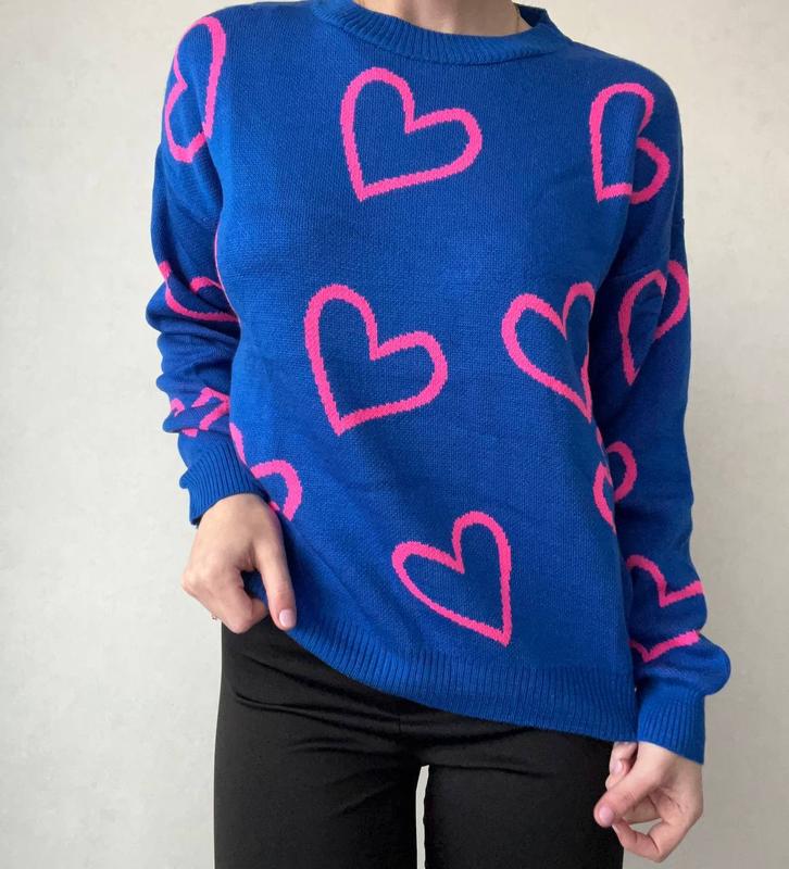 Синій светр з сердечками