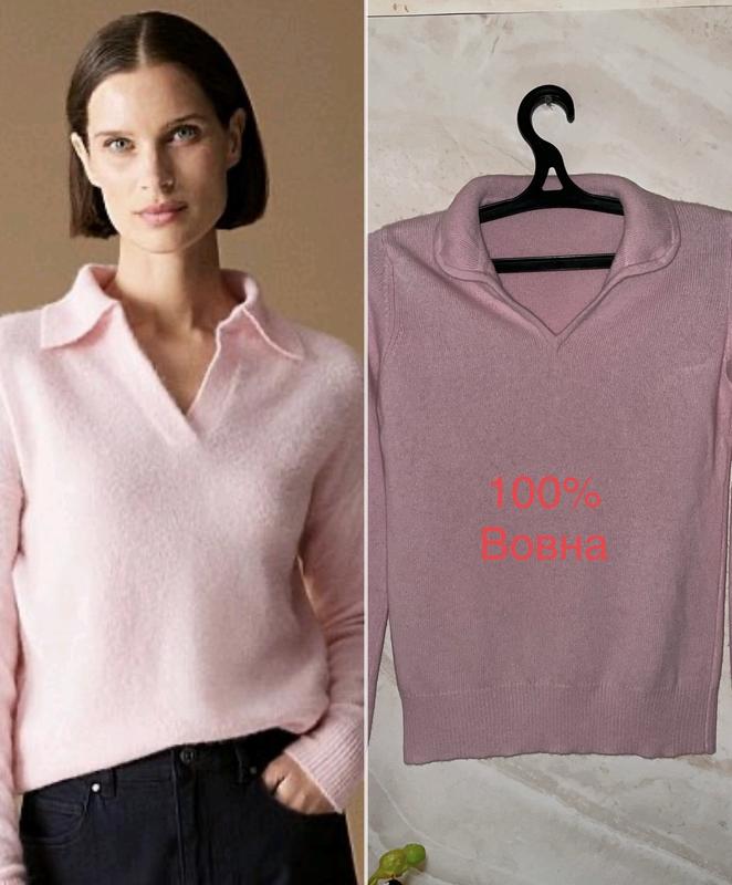 Светр поло в дуже гарному рожевому кольорі. Ідеальний стан! Щільний, гарно тримає форму, трошки колеться. Бірки зі складом не має, присутня тільки бірка з рекомендаціями по догляду, де зрозуміло, що річ вовняна. Але і на дотик відчувається, що це вовна. Розмір S/XS: плечі 35 см, рукав 65 см, НОГ 41 см, довжина 58 см.