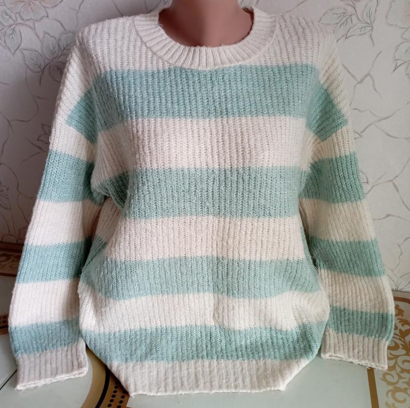 Фирменный, Тепленький свитер в полоску, плечи спущены -свободно, ПІГ 55-60, ПИТ 55-60, рукав от горловины 72, длина изделия 64.