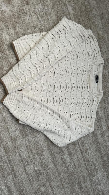 Короткий свитерик вязаный, имеет окантовку, приятный к телу, оверсайз