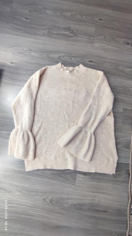 Красивый и теплый женский свитер, с красивыми рукавами, есть два разреза по бокам в идеальном состоянии, размер L