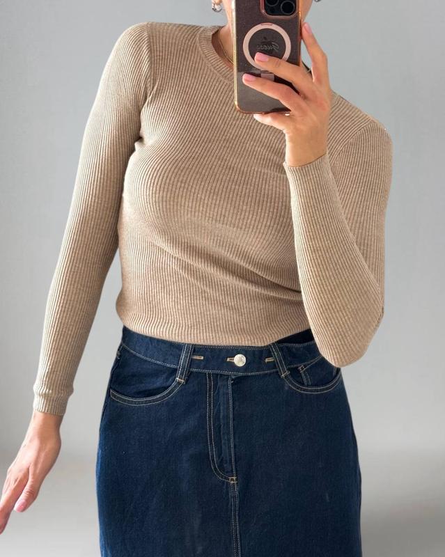 Базовый однотонный трикотажный свитер Модель: 167so Состав: трикотаж рубчик (65% cotton, 35% polyester) Размер: универсальный (42-46) Длина изделия 56 см Длина рукава 61 см Ширина под подмышками 33 см (тянется на ОГ до 100 см)