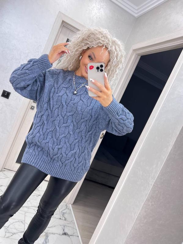 Cветр Модель 5059 Размер универсальный 44-60 Состав 50% шерсть, 50% акрил. мод) Кольори: джинс, смарагд, пудра Замеры: - длина 72 см; - ширина 52-66 см; - длина рукава от горловины 72 см.