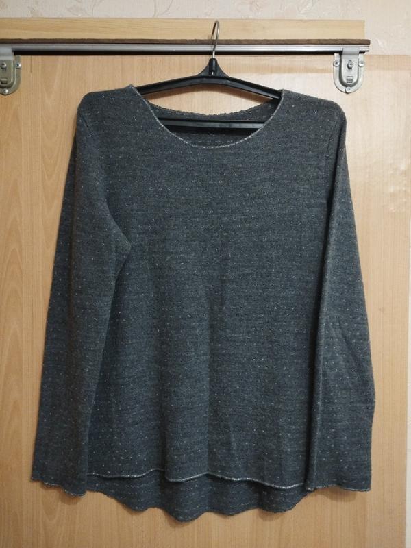 Хорошего мышиного цвета. Длина спереди 64 см, сзади 68 см. Ширина 56 см. Классно смотрится. Весь мирер в маленьких дирочках, каждая из которых обстрочка люрексной нитью, такой же нитью обстрочка вся вещь. Тоненький, но тепленький.