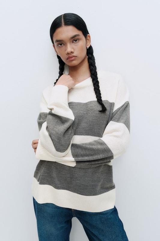 Стильный свитер в полоску, оверсайз, подойдет на разные размеры