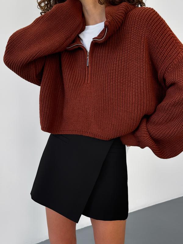 Свитер с молнией терракотовый