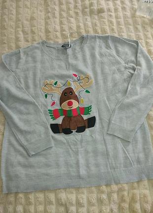 Свитер новогодний, можно для фотосессии. Цвет - серый, размер хл. состояние нормальное
