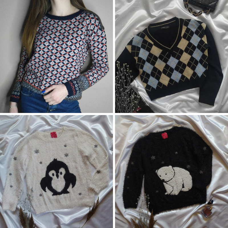 Кофти по 50грн 1.Вязаная кофта приятная к телу ◽️poзмip: S ◽️состояние: Идеально Параметры: Длина: бОсм Полуобхват груди: 50см Рукав: 50см 2. Вязаная кофта от Shein ◽️размер: S/M ◽️стан: Дуже хороший Параметры: Длина: 43см Полуобхват груди:45см Рукав 50см 3.Белая кофта новогодняя тёплая тёплая ◽️размер: s ◽️состояние: идеальный Параметры: Длина: 60см Полуобхват груди: 50см Рукав: 55см 4. Черная теплая кофточка травка тёплая ◽️размер: s/m ◽️состояние: идеальный Параметры: Длина: 60см Полуобхват груди: 50см Рукав: 55см
