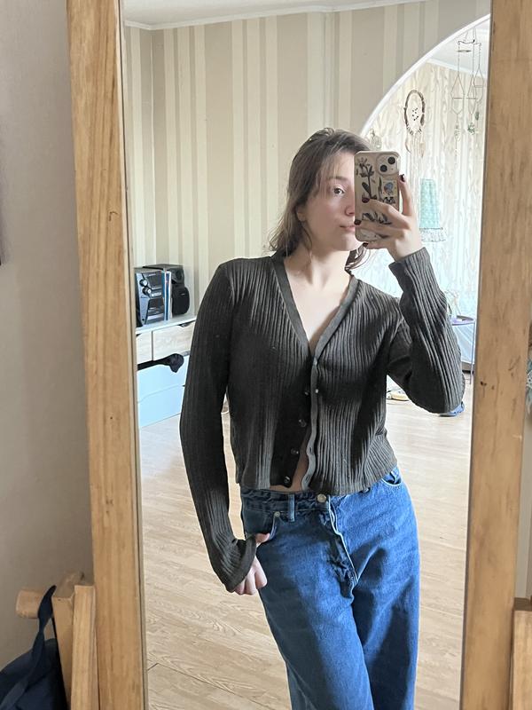 Женская кофта хаки цвета.Стан-хороший.Размер-L.Одежда на S. Бренд-Stradivarius.На заднем фоне видна причина продажи-переезжает, тем самым разгружая гардероб.Мозный торг