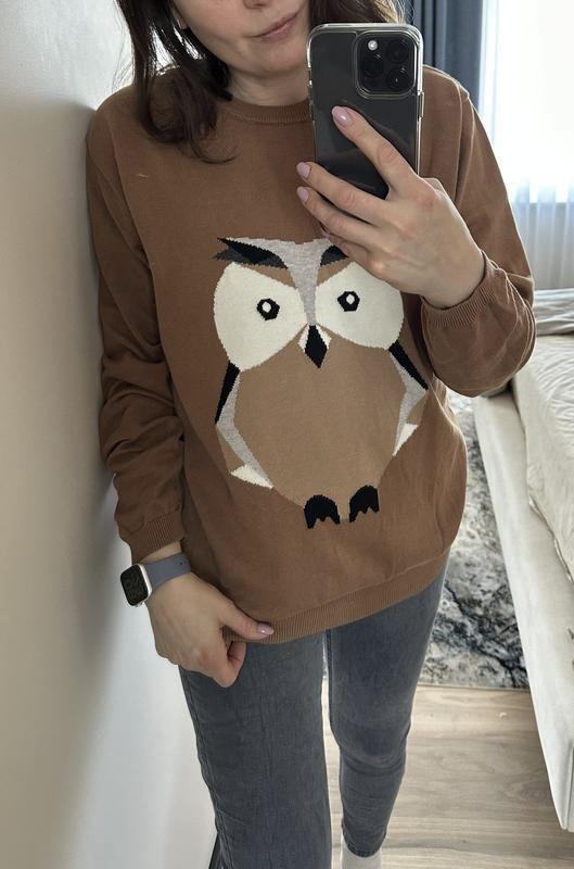 Гарний бавовняний светрик з класним принтом- велика сова від Cotton Traders. Підходить на L/ XL ( на фото одягнено на М, зріст 168) Колір: карамельний