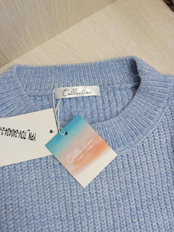 Ніжно блакитний колір, мягенький і тепленький, підійде на с-м, шикарно сидить на тілі. Довжина светра 53см, довжина рукава від шиї 65, пог 58см.