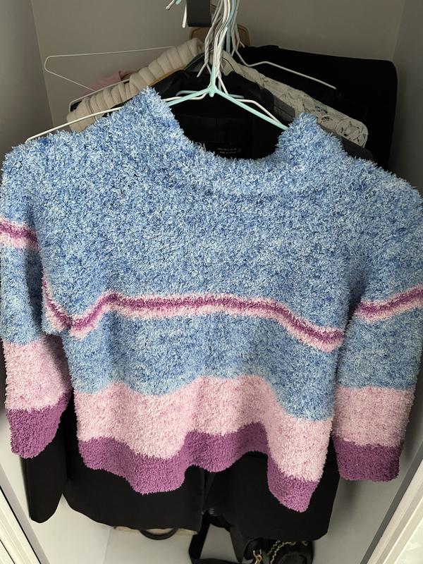Теплая яркая женская кофточка Продается мягкая и уютная женская кофточка. Модель выполнена в приятных пастельных тонах: голубом, розовом и фиолетовым, с полосатым узором. Идеально подходит для холодного времени года, даря комфорт и стиль. Состояние: б/в, в отличном состоянии, без пятен и повреждений Размер: M Материал: плюшевый, мягкий на ощупь Цвет: сочетание голубого, розового и фиолетового Особенности: мягкая текстура, округлый вырез, свободный крой Эта кофточка станет отличным выбором для повседневных образов или домашнего уюта. Теплая и приятная к телу, она отлично подходит для осенне-зимнего периода.