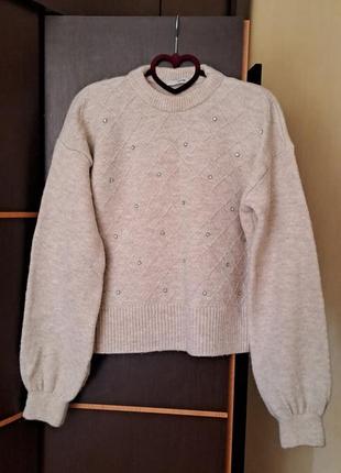 красивый бежевый свитер со стразами, замеры по запросу