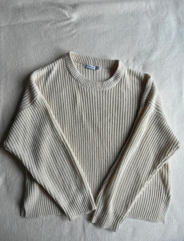 Однотонный свитер, бежевого цвета, мелкая вязка, есть небольшая зацепка, свитерик свободного кроя За дополнительными фото или замерами пишите)