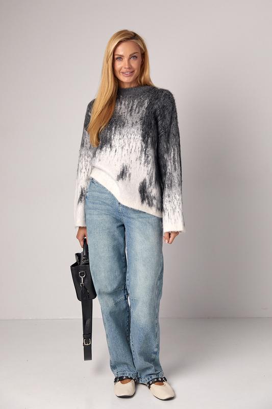 Кофта з ворсистої пряжі із абстрактним візерунком - сірого кольору (241158)