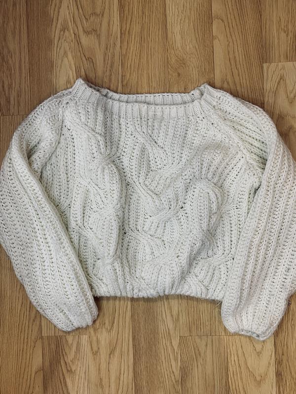 Объемный укороченный вязаный мирер🤍 ▫️Размер S-XS ▫️Длина от плеча до низа - 46 см ▫️Полу обхват грудей - 50 см ▫️Длина рукава - 50 см В очень хорошем состоянии
