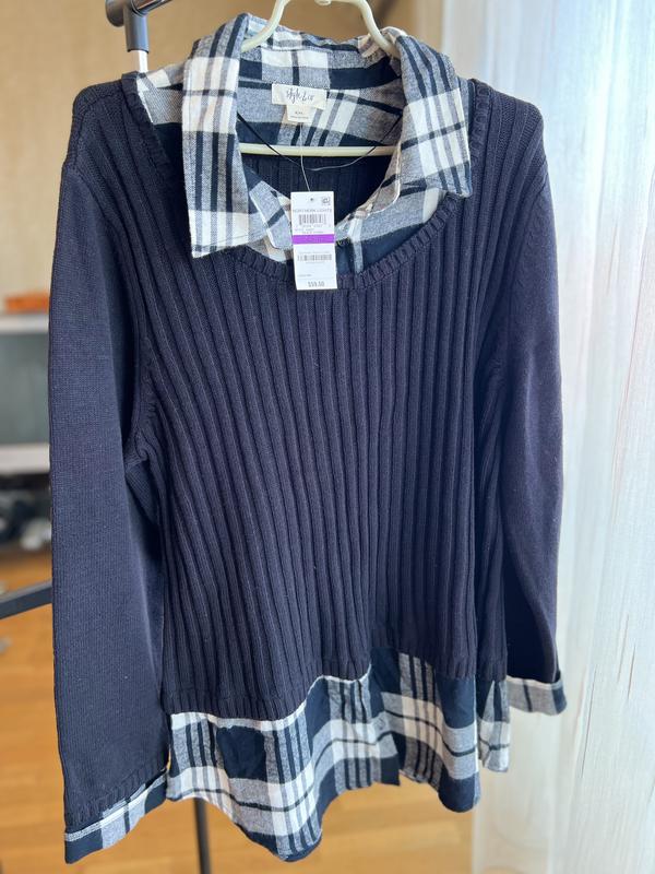 Новый свитер с имитацией рубашки XXL Длина 74 ПОГ 50 ПОТ 59 Рукав 68 Тянется