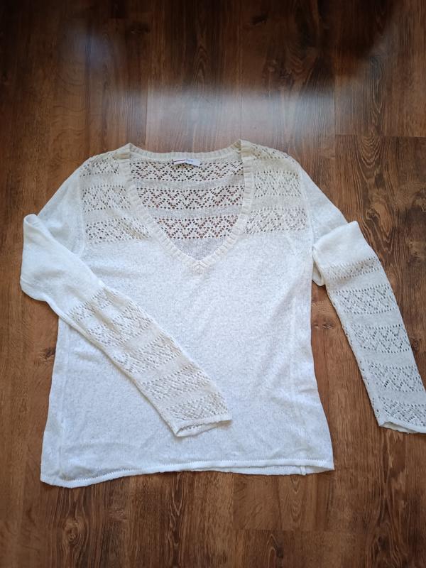 Очень легкий свитер-блуза молочного цвета с сеткой. пог - 54, пот - 50, длина - 60