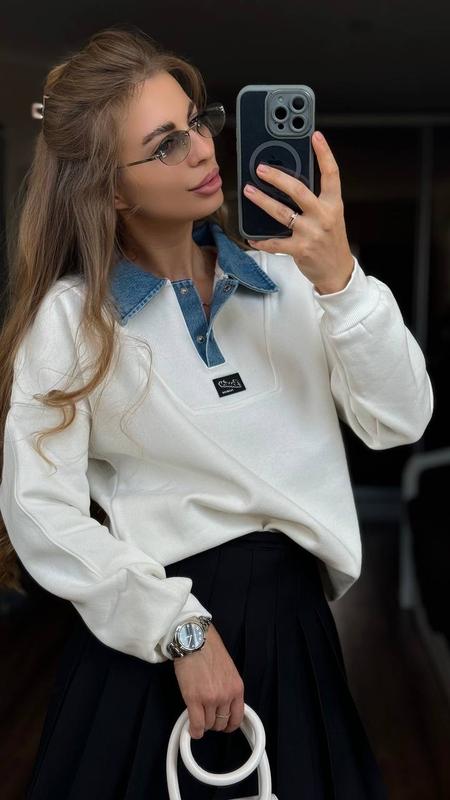 Эксклюзивные утепленные свитшоты с джинсовым воротничком 💘 Высокое фабричное качество, Турция 🇹🇷💯 Размеры S/M, L/XL ▫️S/M-ширина 55-57 см ▫️L/Xl- ширина 58-60 см Длина 62 см Рукав от горловины 70 см