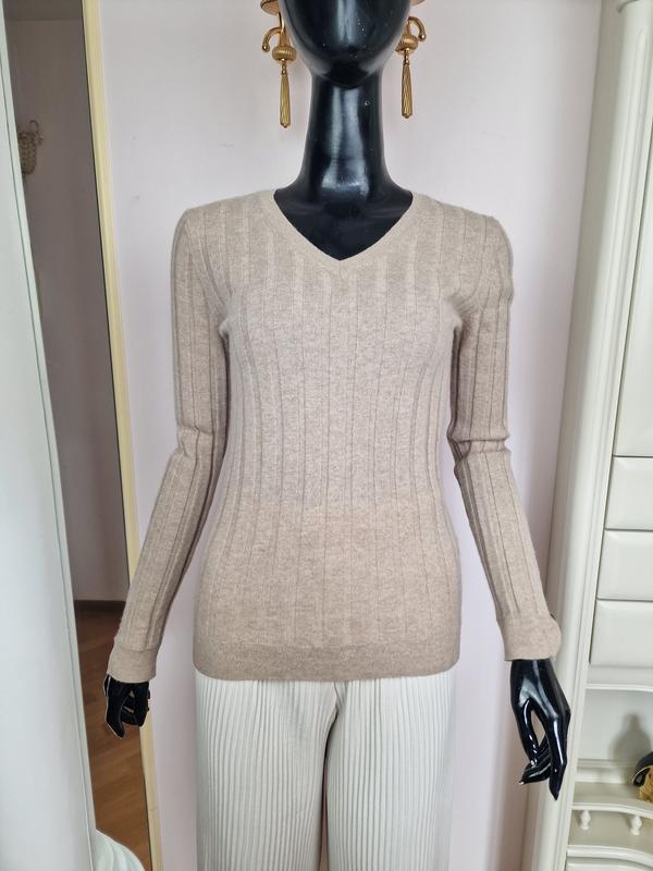 Жіночий джемпер зі 100% кашеміру в ніжному бежевому відтінку, виготовлений з V-подібним вирізом і вертикальними в'язаними візерунками, що надає елегантного та вишуканого вигляду. Цей м'який і теплий кашеміровий светр стане незамінним елементом вашого гардероба в прохолодну пору року, поєднуючись із різними стилями та образами. Особливості: Склад: 100% кашемір V-подібний виріз Колір: світло-бежевий, нейтральний і універсальний відтінок Чудовий стан, за винятком кількох невеликих акуратно зашитих дірочок, які розташовані збоку в самому низу виробу та практично непомітні. Нюанс на останній світлині. Цей джемпер — ідеальний вибір для тих, хто цінує комфорт і елегантність у повсякденному одязі.
