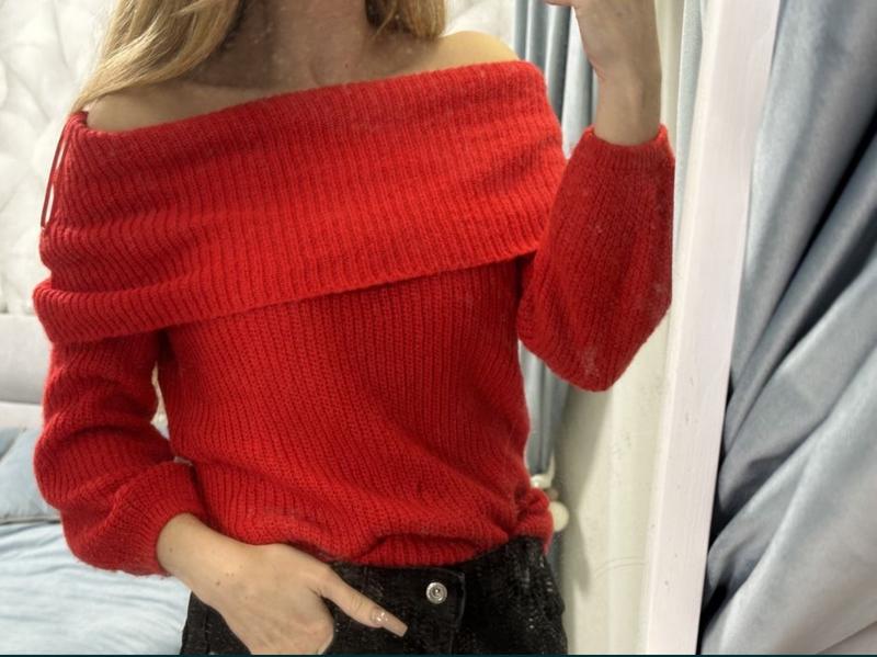 Теплые вещи могут быть стильными! Свитер отличного качества, красивого красного цвета, НЕ скатывается. Очень красиво и женственно смотрится если носить с приспущенными плечами. На этикетке указан размер xs, но на s тоже будет супер. Состав : 59% акрил, 41% полиэстер