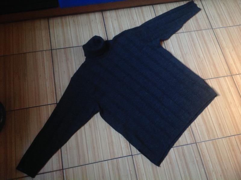 Свитер с горлом.Колир черно-серый меланж( фото 4),На других фото цвет сильно искажен.По бокам небольшие разрезы.Все вязаное полотно состоит из полосок разной ширины.Теплий,комфортний Полномерная L....НОГ 60 см,НОТ 58 см,длина рукава от шеи 68 см, длина изделия по спине 67 см,от плеча к плечу 46 см. Смотрите мое другое объявления.