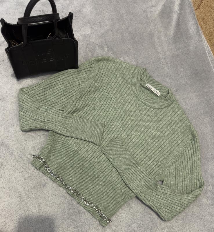 Свитер в размере S,гарного оливкового цвета, укороченный