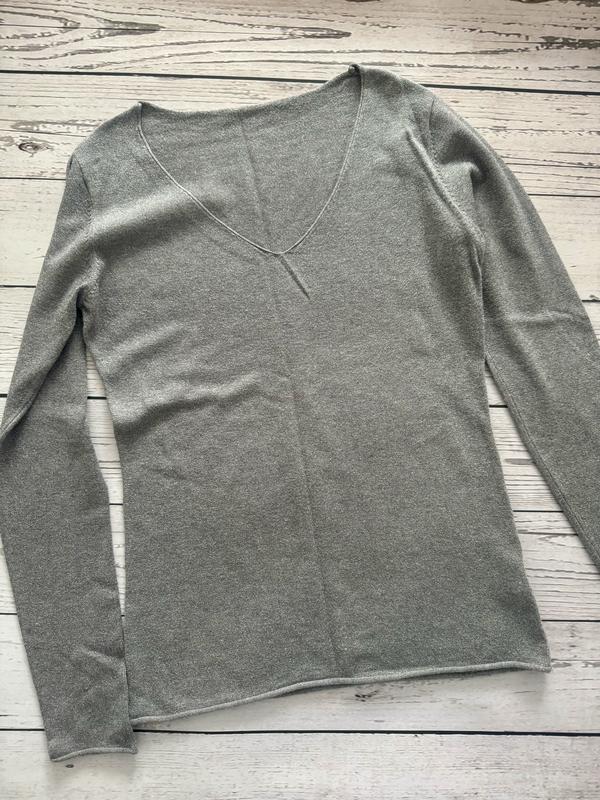 Сіра кофточка з люрексом Підійде на Рр М, можливо С Довжина 58 Рукав від плеча 61 Пог 42 тягнеться
