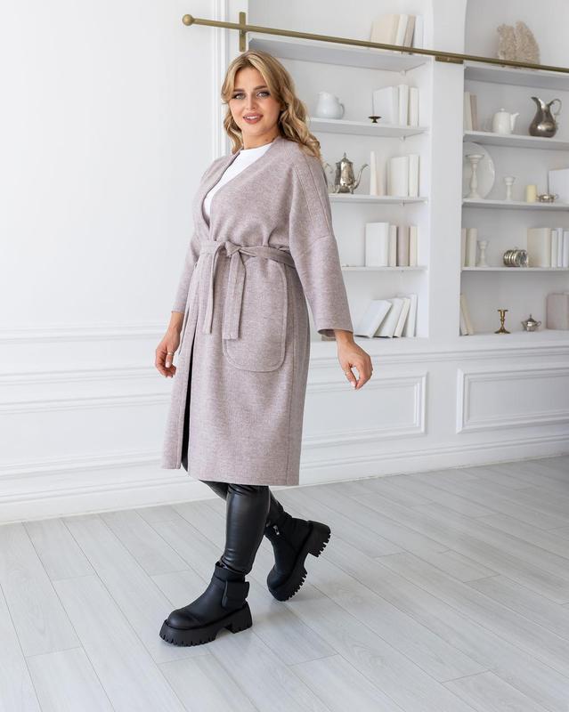 Теплый кардиган из двухсторонней ангоры. Свободный крой обеспечивает свободу движений и комфорт. Оригинальный крой, пояс в комплекте. 48 размер: подойдет на параметры: ОГ 94-97, ОТ 78-81, ОБ 102-104 см 50 размер: подойдет на параметры: ОГ 98-102, ОТ 82-85, ОБ 105-108 см 52 размер: подойдет на параметры: ОГ 103-105 см, ОТ 86-90 см, ОБ 109-112 см 54 размер: подойдет на параметры: ОГ 107-110 см, ОТ 91-95 см, ОБ 113-116 см 56 размер: подойдет на параметры: ОГ 111-113 см, ОТ 96-98 см, ОБ 116-120 см 58 размер: подойдет на параметры: ОГ 115-117 см, ОТ 99-102 см, ОБ 121-124 см