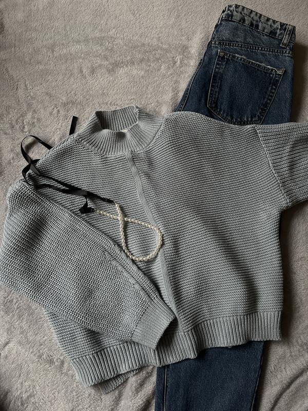 Нежно - голубой свитер, длина 50 см, пог 60 см, рукав от горла 65см
