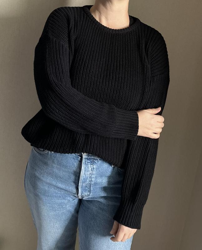 Чорний светр з котону American Apparel, розмір L Не кашлатиться. Вʼязка косичка Рукав від осн.горловини 73 см ПОГ 62 см Довжина 61 см