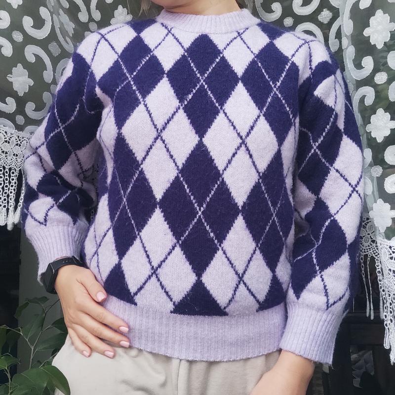 теплый укороченный свитер фиолетового цвета. длина от шеи 56 см. длина рукава 45 см. полуобъем груди 48см