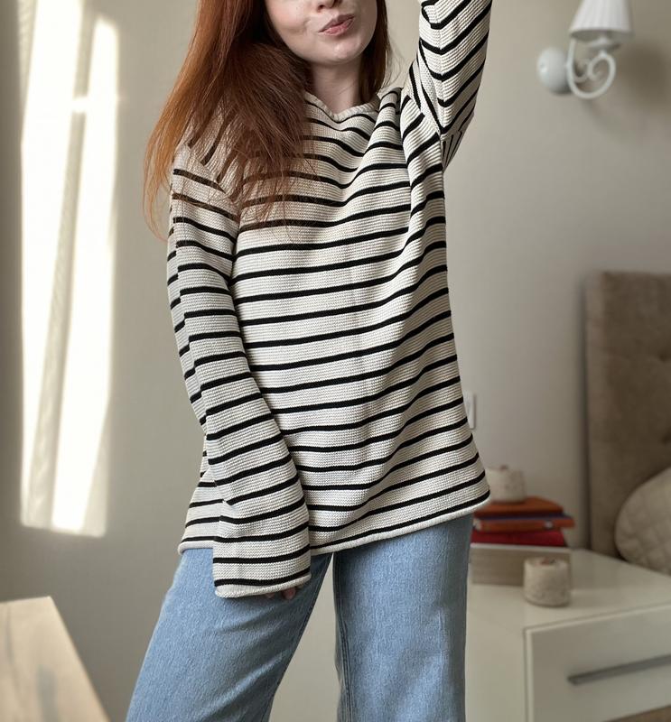 Светр у смужку Рост на фото 152 см Лучше сядет на кого-то выше, для своего роста рукава удлиненные немного. Надевался один раз, максимально идеальное состояние