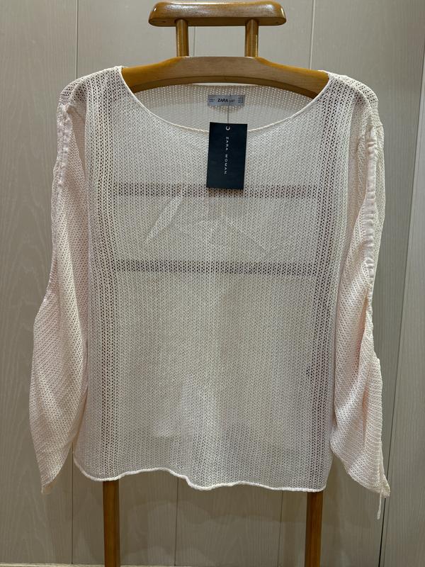 В наличии красивая кофточка-оверсайз фирмы ZARA. Цвет пудровый. Размер указан S, но из за такого свободного кроя отлично будет от 8 до 14 размера. Состав: 38% вискоза и 62% полиестер..ткань мягкая и приятная к телу, хорошо тянется. Полуобъём в груди - крой свободный...62 см Длина - 59 см Плечи приспущенные Длина рукава от ворота -65 см Полуобъём в бедрах - крой свободный...63 см