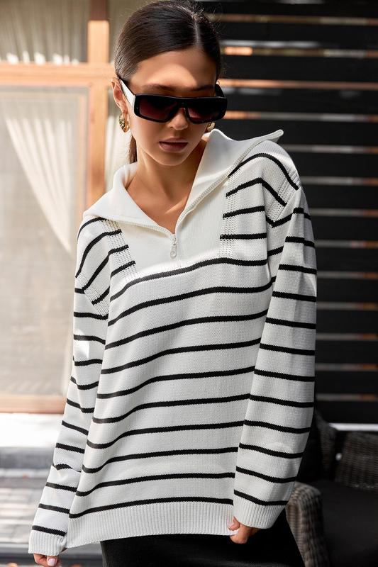 Кофта женская свободная в черно-белую полоску, на молнии. модель 2482