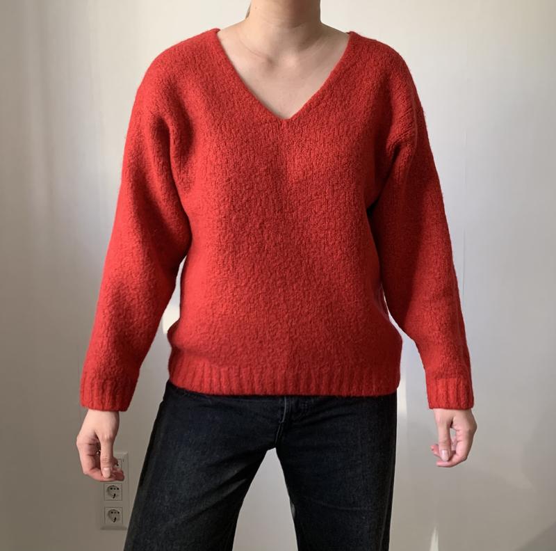 Свитер красного цвета от H&M Размер М В составе 10% альпака, 25% шерсть, 40% акрил Не колеться Длина 58 см, длина рукава от горловины 65 см, полуобхват груди 56 см Стан - идеальный Одето на размер Л, рост 167