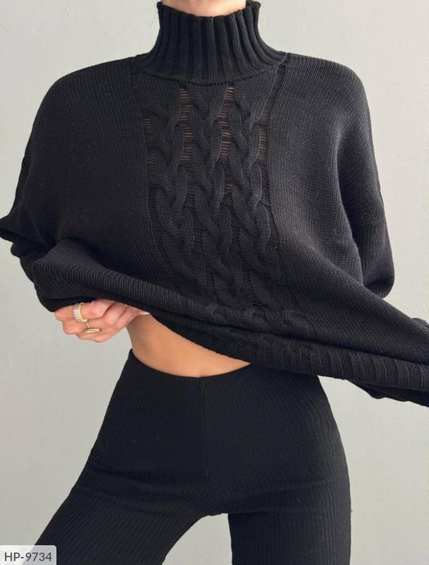 Светр HP-9734 модель 4097 Розміри: 42-50 Виробник Туреччина Ніжний, ефектний, теплий, м'який, елегантний усе це можна сказати про цей светр. Крій оверсайз, спущене плече, високий комір, фактурні коси спереду. Дрібне машинне в'язання в поєднанні з фактурним коміром і манжетами низу та рукавів. Він точно розіб'є ваше серце Заміри: ОГ 58 см Довжина 55 см Довжина рукава від горловини 75 см Кольори: чорний і молоко